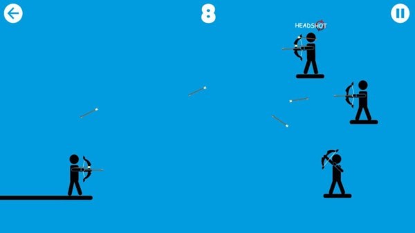 拖动屏幕射箭,瞄准对面的火柴人射击。