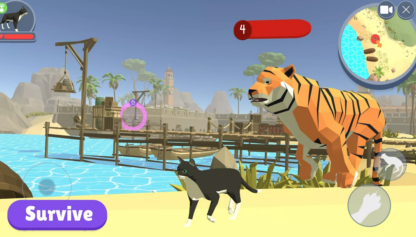狩猎。你是一只猫,这意味着你必须经常狩猎。游戏中有很多动物。以下是其中的一些:鸡、鹅、狼、海狸、狐狸、野猪。此外,还有奇异的动物:狮子、鸵鸟、鳄鱼等等。