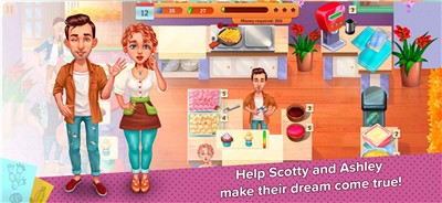 游戏中的画面和场景均为卡通形象,玩家可以通过特定的餐厅进行游戏;