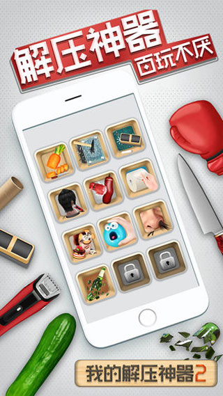 我的解压神器2是一款专为放松减压而设计的休闲益智游戏。游戏风格是恶搞,玩法很解压。包括打沙袋、切菜、拔鼻毛、擦黑板等12个独立游戏。每个游戏都有自己的风格,安静的背景音乐,代入感。是每个人在生活中释放压力,放松心情的最佳选择。虽然游戏难度不高,玩法也比较普通,但毫无疑问,它可以让你从枯燥的日常工作生活中释放出来,逃离生活的沉重迫害,拥有人生的另一种快乐。感兴趣的朋友不要错过下载。