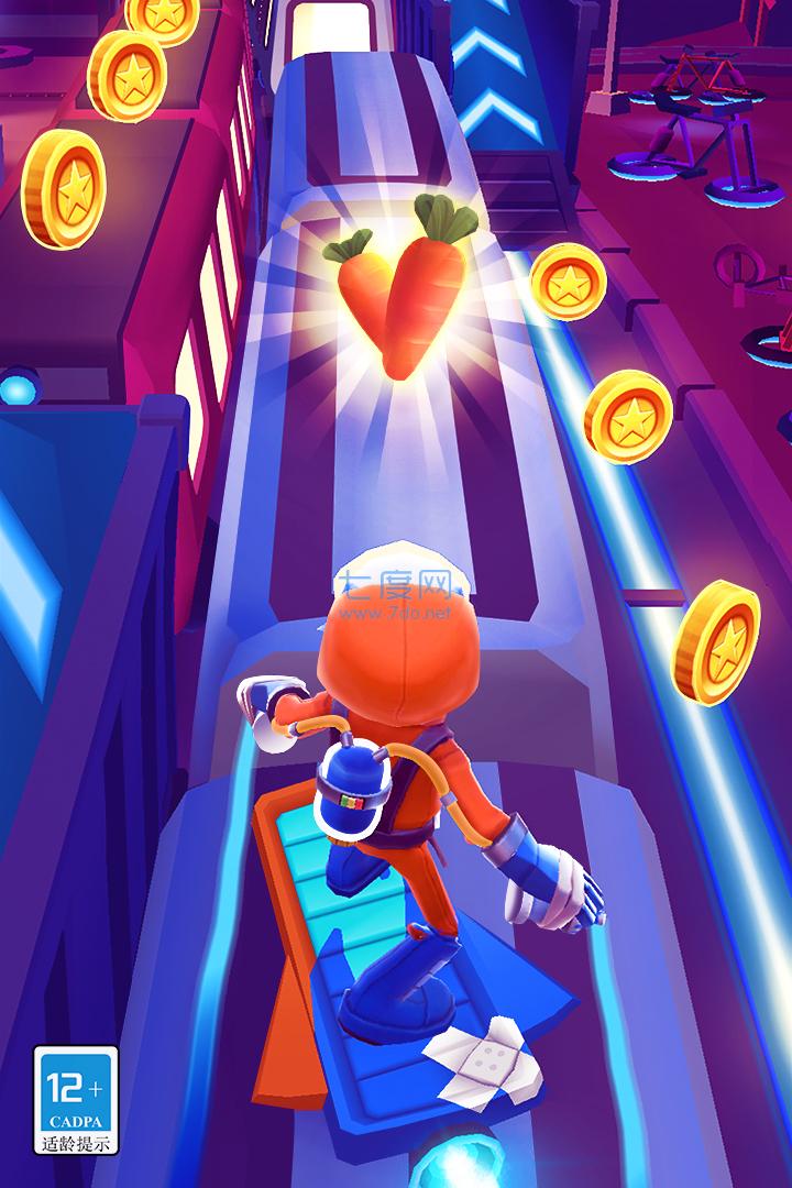 2.地铁跑酷沿路也有大量的小彩蛋,多多累积大量的游戏道具,得到丰富多彩的奖赏去最后的冲刺。