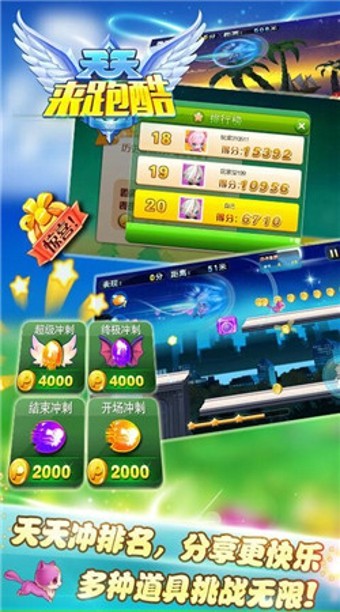 天天来酷跑最新版下载是一款非常好玩的冒险跑酷游戏。游戏的画面非常精致,充满卡通幻想色彩,我们仿佛来到了童话世界!非常简单的操作方式,滑动屏幕来控制人物的动作。躲避前方的障碍,收集场景中的金币和道具!