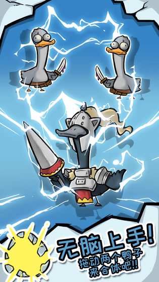 超级好玩的《来合体鸭》休闲合成手游火热来袭,不需要智商,可以无脑上手,只要你把两个鸭子拖到一起,就能合成一个新的更加强大的鸭子,无限合成,越合战斗力越高,60多个品种等你来解锁,一起冲鸭!看谁先合到最强鸭王!