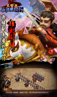 《三国志加强版2017》作为一款超级酷萌的国战,您可以通过英雄技能选择,兵种相克排布,四两拨千斤,这里没有绝对的战斗力王者,但是却有逆天的智者,丰富的游戏系统,多样的路线--英雄,兵种,神兽,转生,封神,阵法,神装,让您越玩越有趣,同时用心为主公定制了专属每日活动日历,清晰明了帮主公安排游戏时间,告知游戏活动,玩游戏就是要这么轻松愉快!