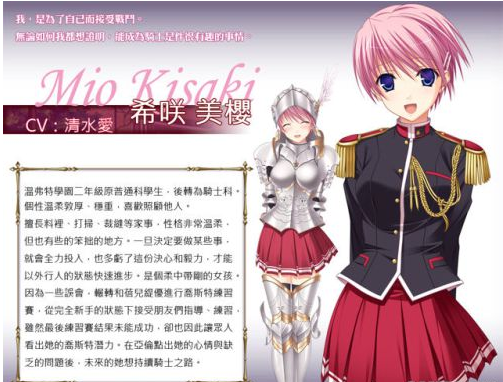 负责原画的こもりけい先生将以其出类拔萃的美丽插画,着重渲染贯彻骑士精神的高贵少女们,让她们那楚楚可怜却又威风凛凛的魅力得以最大呈现。同时,由于本作也会描写严肃的马上长枪比赛,不只是的少女姿态,比赛中严肃又斗志昂扬的骑士风范也定能让您乐在其中。赌上各自的尊严与火热思念,于马上驰骋交错,青春岁月就此开始。