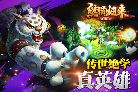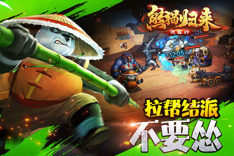 《熊猫归来-侠客行》,2015年度革命性功夫RPG手游,游戏中以动物为原型、功夫为主题、力求国内顶尖的美术品质、精细的动作设计、丰富的游戏玩法,打造出一个拥有数十位性格迥异、背景莫测的功夫大师以及千万种战斗组合的功夫世界。