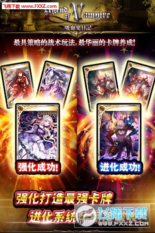 《吸血鬼日记》是一款由空中网开发、以暗黑奇幻吸血鬼故事为题材的战术卡牌手机游戏。唯美而庞大的与动画带玩家感受千年之战的悲与喜,华丽黑暗的卡牌与人物设定创造史上最具传奇的吸血鬼世界。前所未有的战术卡牌玩法引领独一无二的玩法,千变万化的牌组搭配衍生激烈对战的策略性。最美丽最危险的吸血鬼日记,等你来谱写。