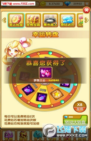 7、幸运转盘:每日有免费转动次数,有几率获得S级稀有碎片;