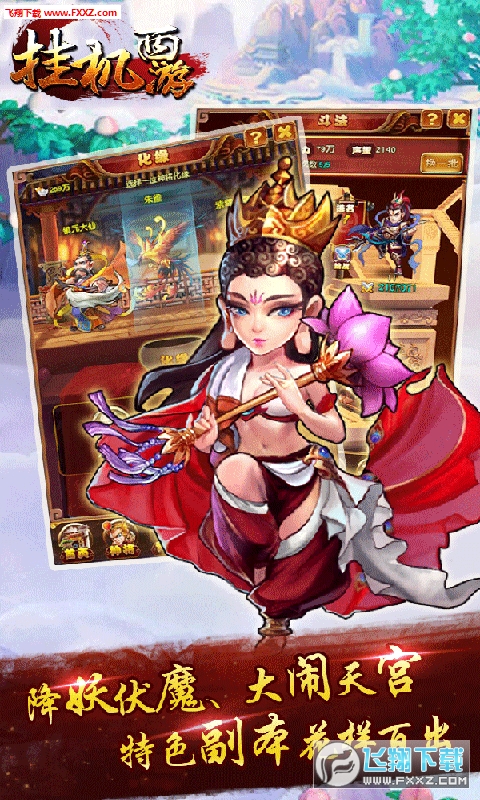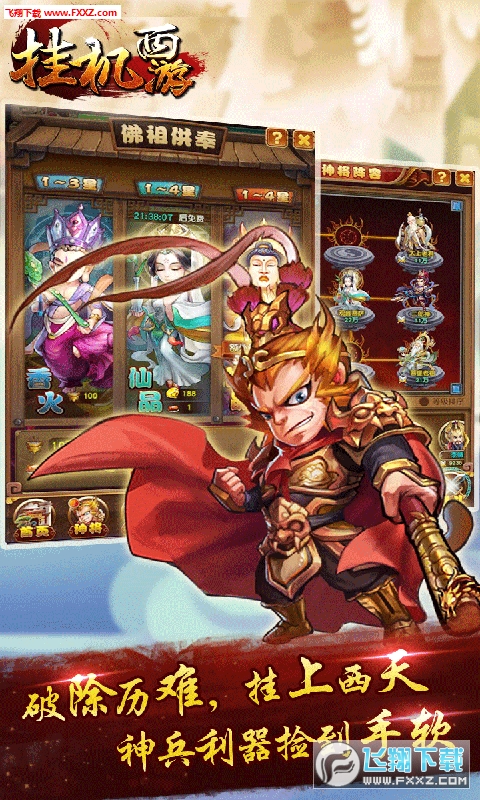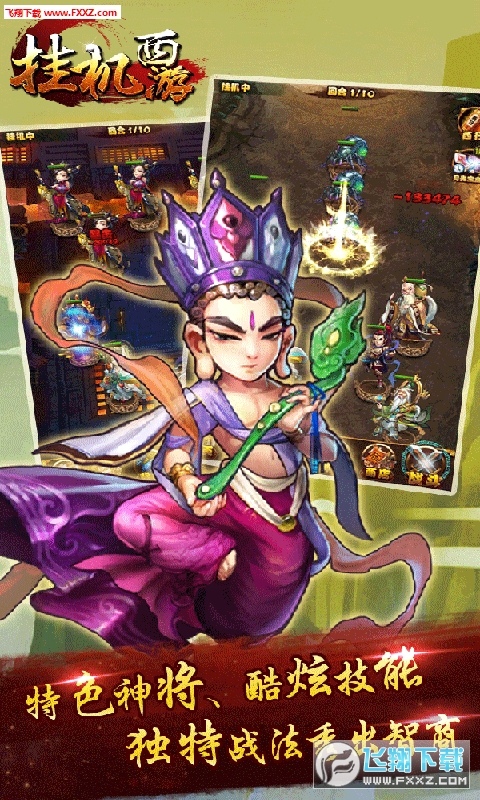 挂机西游是一款放置类回合。降妖伏魔大闹天宫特色副本花样百出,破除历难挂上西天神兵利器捡到手软,特色神将酷炫技能独特战法秀出智商,玩家可以在游戏中挂机升级、排兵布阵、挑战各色Boss,还可以各色神将、培养自己的专属互道者,游戏采用回合式挂机玩法,从藏宝阁中换取惊世宝物锻造至强法宝。
