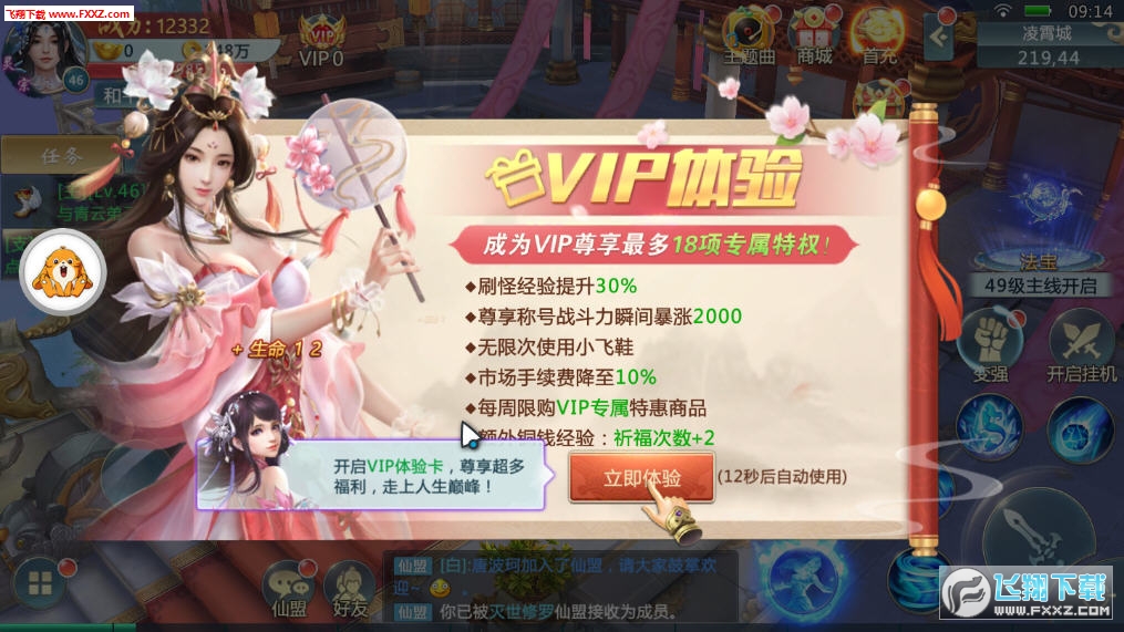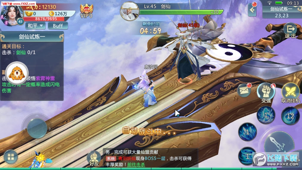 3、超多丰富的玩法,大战异兽,独创九天,空闲时间还可以御剑飞行。