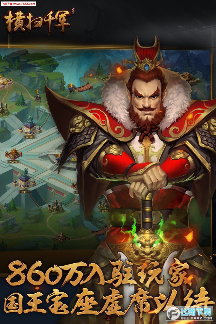 横扫千军是一款以三国为背景的策略国战手游。游戏拥有极高的策略性和竞技性,玩家可以带领获得全新天赋的三国武将们驰骋中原、并培养建设自己的国土、率领千军万马攻城略地,最终帮助自己所属的国家成就最终一统天下的霸业。首创国家玩法,玩家可自主选择魏、蜀、吴三大阵营,并国战中全服地图的城池上自由调兵遣将,对城池进行移动或攻击。同时游戏的写实风完美再现三国时期的战争场景,让你拥有身临其境的战斗快感!