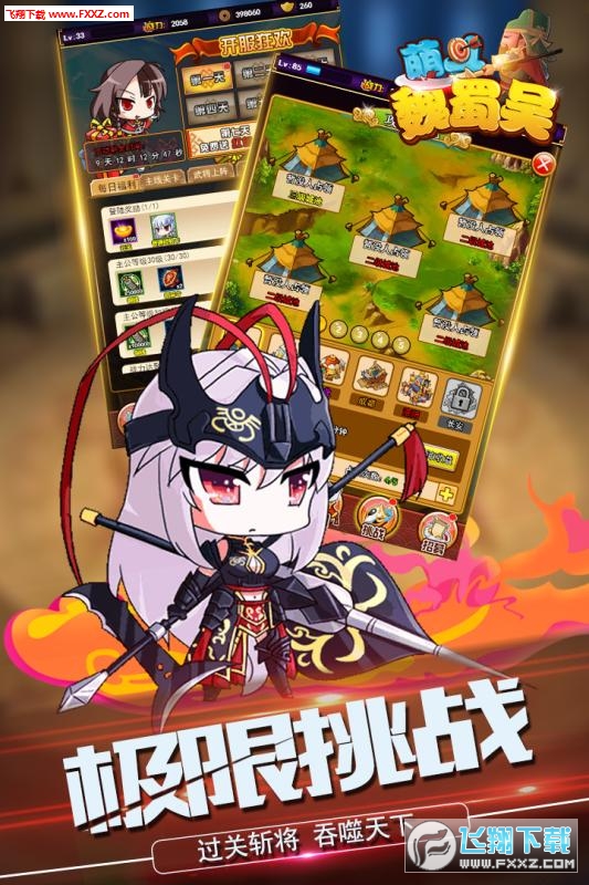 游戏《萌斗魏蜀吴》轻松上手而又极富策略性!全面超越了传统挂机游戏的体验,游戏画面细致精美,设定的关卡趣味性极强,主角们萌出天际,装备系统和熔炼模式也是别出心裁 。