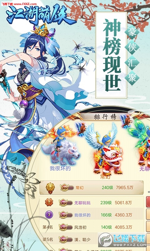 《江湖萌侠》是一款Q版游戏,开局就送vip5!SSR宠!更加有爆款SSSSR神宠等你来拿!经典回合中搭配萌侠故事,营造铁血武林风格!酷炫坐骑共同潇洒江湖,独有超萌宠物自由,多样经典回合玩法无穷乐趣!