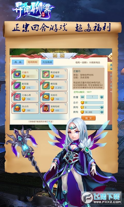 《异闻聊斋》免费送千元充值,是一款以小倩、宁采臣的新编故事题材的回合手游,游戏无VIP系统,上线就送海量元宝、海量福利。入手0元礼包即可助力战力快速成长,时装、神宠、飞行坐骑等你免费来拿,来《异闻聊斋》Q萌宝宝全靠抓,抓来就能骑;装备靠打、无级别神装完全平民化、告别游戏打装备的神坑;还能奇遇金玉良缘,暖心小姐姐陪你玩转游戏。