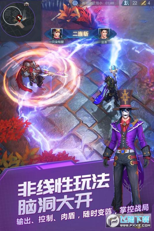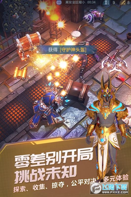 MOBA与吃鸡的完美结合,2.5D上帝视角纵览全局。熟悉的套路,混搭的模式,简易的操作,左手摇杆控制角色走位,右手摇杆释放技能道具,零门槛快速上手,新手也能轻松吃鸡。