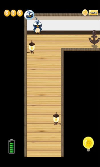 游戏玩法很简单,游戏中关灯时企鹅会上下移动,开灯时企鹅则会左右移动,撞到墙壁则会往反方向移动若撞墙壁超过一定次数,企鹅就会生气,玩家需要好好安抚他喔!当企鹅走到船锚前面时,游戏就过关了!