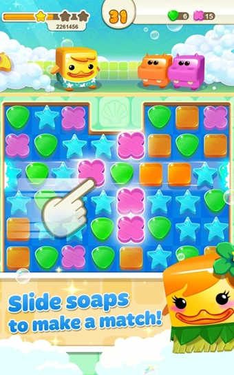 肥皂宝宝传奇 Scrubby Dubby Saga》由糖果传奇和农场英雄传奇这两款游戏的开发商鼎力打造!管道玩具需要你的帮助来解救它们的朋友。滑动香皂开辟一条道路,踏上王国中的之旅。一路上,你将遇到许物和充满挑战的关卡,你想成为香皂之星,帮助大家找到失去的伙伴吗?你既可以独自踏上这段奇妙的传奇之旅,也能与好友一起游戏,看看谁才是得分王!