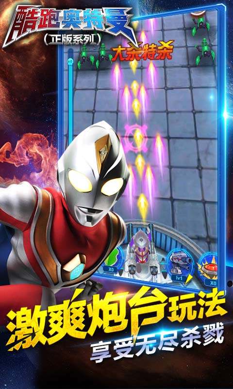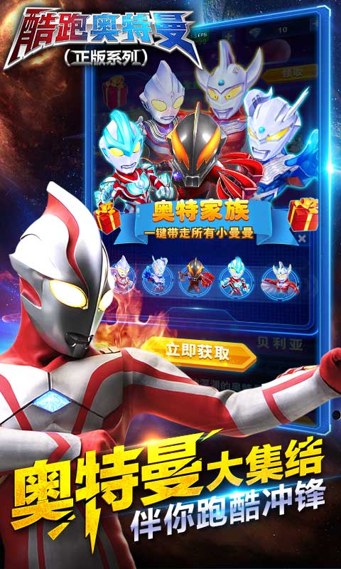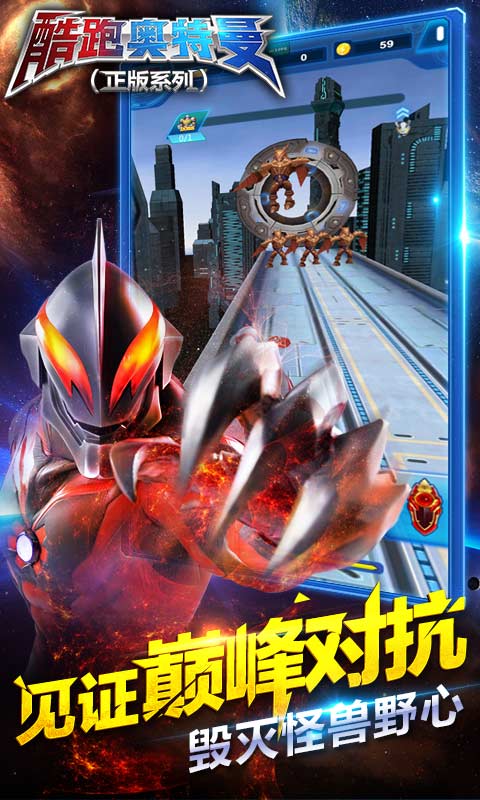 酷跑奥特曼(正版系列)是一款跑酷游戏。游戏真实还原游戏角色,并在此基础上将形象加以美化,同时对场景的渲染、怪物的设计以及障碍物的处理,让众多喜爱奥特曼的玩家在游戏中体验到了原版的精彩内容。