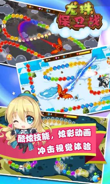 《龙珠保卫战》是一款卡通风格,画面精美,动画细腻,玩法新颖的消除游戏。游戏核心玩法是风靡全球多年的祖玛类型,融合了创新的空中战斗,Boss玩法,技能升级,主动释放,特色障碍等新元素,告别碰运气时代,开启掌控新纪元!