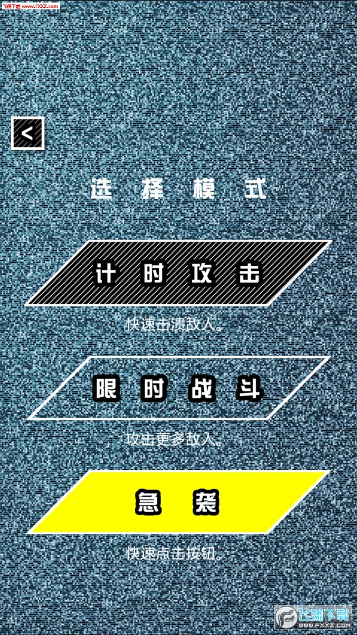 考验玩家灵活反映和手速的游戏,有三种游戏模式,根据屏幕上提示的字母,点击下边的三个按键,快准狠才能。“急袭”模式则没有规则,纯粹测手速,点击200下最快需要多少时间,小编最快21.4秒。