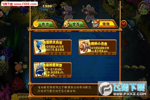 3.多种子弹任你选,200种鱼类随你挑,电磁风暴,特技超凡,轰炸一切;