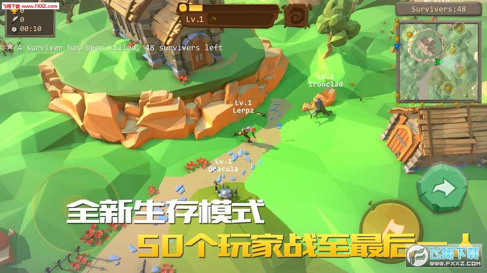 战斧大乱斗这款集合、、大逃杀等多种刺激玩法的io竞技,冷兵器荒岛生存对决玩法,超刺激快节奏io竞技快感,50个玩家同局竞技,努力生存到最后荣耀