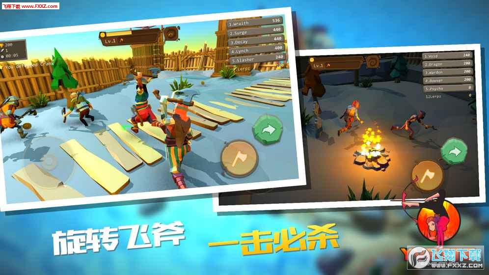 【畅快淋漓的激情对战】游戏只有一个简单但耐玩的机制:扔出飞斧击杀敌人,再捡起来继续干!也可以猥琐发育,更多的斧头对敌人展开连射!