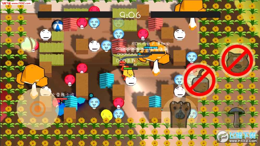 2、如何获得分数?用蓝蘑菇围住红蘑菇会发生爆炸,爆炸的红色蘑菇会变为分数;