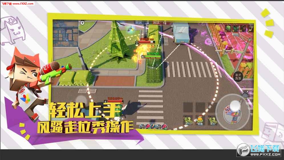 ——轻松上手,风骚走位秀操作游戏使用了2.5D的战斗视角和双摇杆的操作方式,指向性攻击方式配合搞怪道具,每时每刻都能上演大戏,分分钟上手欢乐互怼。另外熟悉的操作加上草丛隐匿、脉冲传送门、隔墙地形打击等花样的地图元素,助你在竞技场上秀出各种精彩瞬间!