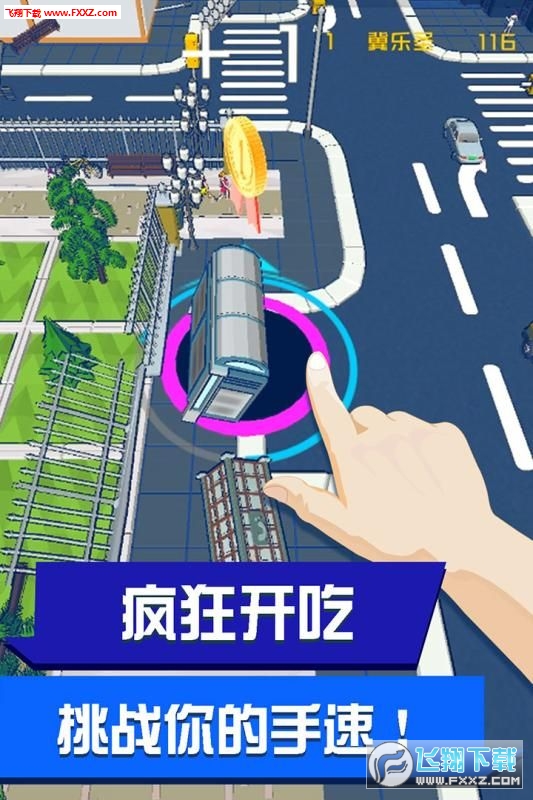 2、方块造型的画面造型设计让游戏变得更加的有趣哦,趣味性十足的黑洞造型让游戏更加的精彩!