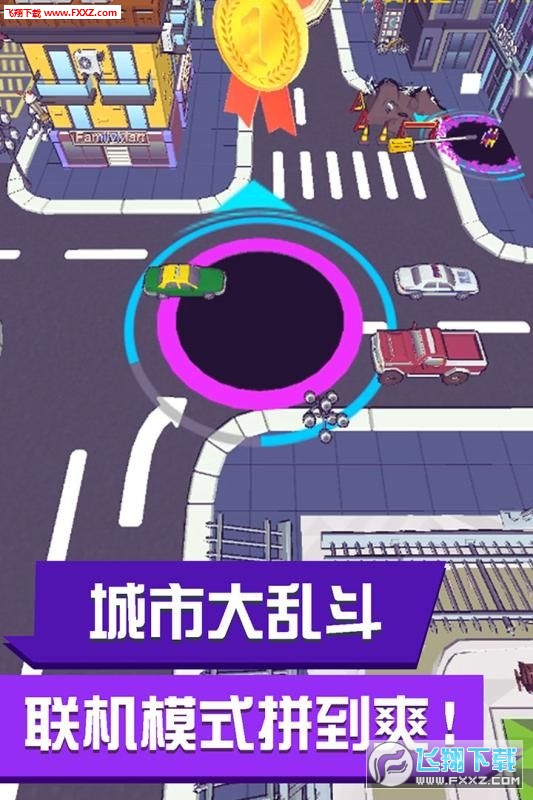 黑洞来了是一款充斥着竞技趣味的黑洞作战类手机游戏,玩家将化身拥有吞噬能力的黑洞在城镇中展开对决,你可以选择吞噬各种各样的道具让自己成长起来,遇到比你小的对手,你就可以将他吞噬化作你成长的力量,不断让自己变强。