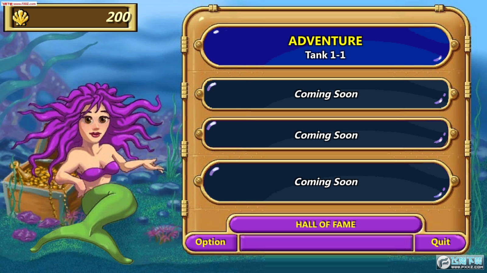 游戏有两条疯鱼。一条是黄色的小鱼,你喂养它,它会带着铜臭的硬币。长大后,成年鱼出生金币。最后,它变成了皇后鱼,皇后鱼