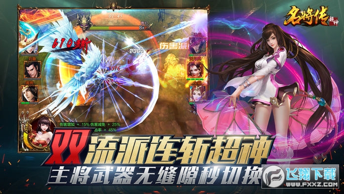 《超神名将传》是一款三国炫技无双A手游,游戏中全写实收录数百位三国名将。主公可在战场中随时释放武将的无双技能,并通过”点按触划”等手势与武将间的深度交互,轻松完成攻击、多段连招、走位闪避、集气怒击等高端无双格斗技巧