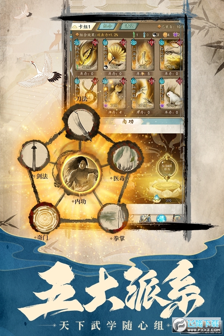 无职业限制,这是一个自由自在的武侠世界。五种不同的武功流派,上百种细分武功,一百人有一百种武功卡组。无论是霸道的刀法、凌厉的剑法、神秘的奇门之术、诡异的毒术还是刚猛的拳法,自由搭配满满,让战斗不再是单纯的战力比拼。