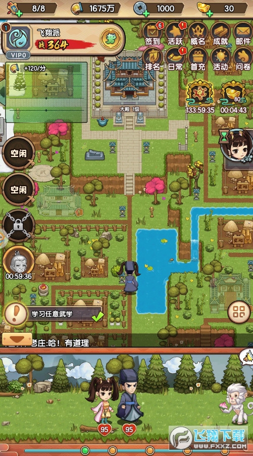1、弟子在门派内可自由安排行程,是修炼武学、采石伐木,还是研习阵法;