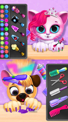和最要好的宠物朋友琪琪和菲菲一起进行新宠物美容院冒险!卷曲、拉直和修剪它们的头发,并制作波浪造型。添加发饰,创造最美的发型。装饰宠物指甲,做最美的宠物美甲。成为化妆高手,在琪琪和菲菲的脸上画画。设计自己的宠物衣服、裙子、衬衫和配饰,为您的可爱小宠物朋友打扮一番。