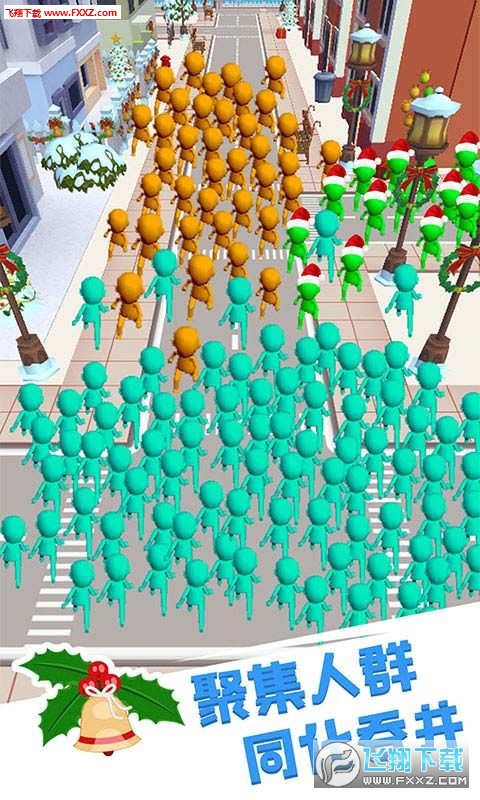 1、玩家需要控制的是十分的小人,然后在大雪纷飞的城市里面来进行吞噬;2、玩家需要控制小人在城市里面来进行吞噬和招募,让自己的队伍人数变的更多;3、只有自己的队伍强大,那么其他的队伍才会见到你就跑,这时就是你追逐的好机会。
