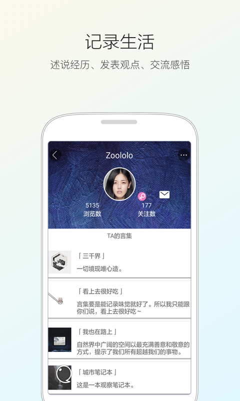 言集,就像是人言杂志的专栏,带有独特的标签。它承载着用户兴趣与生活的点点滴滴,把零散却有意义的小片段串联在一起,让它们犹如故事般有序而精彩。