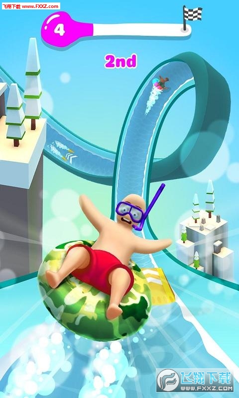 参加水滑梯比赛,战胜你的竞争对手,不惜一切代价,突然的转向,会让你体验不一样的快感,滑过竞赛,获得奖励,并冲击排行榜。