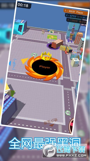 想要获得高分的话,操作的就必须有侵略性,开局正常吃这些小车子,树、路灯这样的东西,等我们的黑洞体积大一些了,就赶快去吞噬其他玩家的黑洞,这样才是成长最快的方法。