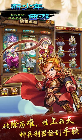 《新少年西游记BT版》是一款类回合手游。降妖伏魔大闹天宫特色副本花样百出,破除历难挂上西天神兵利器捡到手软,特色神将酷炫技能独特战法秀出智商,玩家可以在游戏中升级、排兵布阵、挑战各色Boss,还可以各色神将、培养自己的专属互道者,游戏采用回合式挂机玩法,从藏宝阁中换取惊世宝物锻造至强法宝。