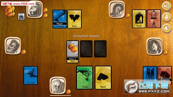 《群贼乱舞》是由Board Games Online出品的一款快节奏桌面类卡牌游戏,它将带你进入一个充满偷盗窃取,尔虞我诈和不耻行为的世界。证明的方式很简单,敛财。每个人在开局时都有一套相同的动作牌,而后在每个之中选择二张扣放在自己的面前。然后,从首动玩家开始每个人轮流揭示自己的卡牌,并且解析其效果。当所有人解析完第一张之后再解析第二张。在回合末的时候,如果并未产生赢家,那么所有人弃掉一张牌然后再把之前的过程重复一次。