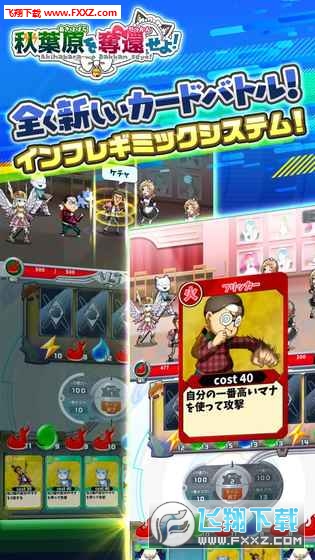 《夺回秋叶原!》是一款全新形态的卡片战斗游戏,核心玩法为育成和对战,并提供线上对战玩法。官方也透露了部分游戏对战情报,游戏的对战形式称为「インフレギミックカードバト儿」(暂译:增值策略战斗),每玩家最多可获得7枚「玛那」,玩家需利用这些「玛那」进行增值,最终获取胜利。