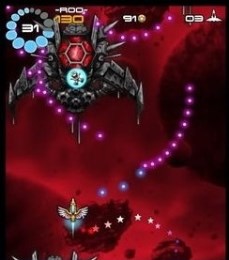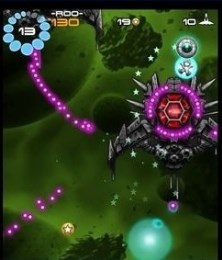 与一般弹幕游戏不同的是玩家控制的飞船不能发射子弹进行反击,所以只能通过敏捷的操作进行闪躲。场景中还会出现一种星星的硬币,这些硬币可以用来解锁新的飞船甚至飞碟,图省事的玩家也可以通过内购直接入手这些强力道具。