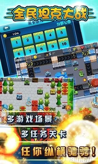 全民坦克大战2015是一款坦克对战游戏。游戏操作十分简单,进入战斗场景后,画面左下角有方向键可以控制移动,点击右下角开火键可以开炮。游戏中多种坦克选择,既有二战时期的各类主战超级坦克,又有各种神奇的坦克。培养并驾驶你的专属坦克,参与几十个有独特设计风格的关卡,执行海量里趣味十足的各种任务,爽快,爆炸酷炫,快感十足!