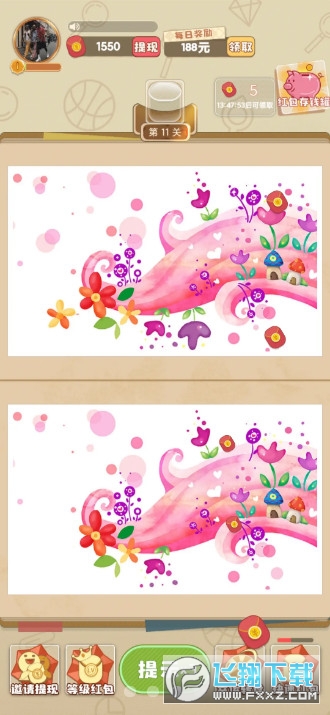 找茬发发发红包版是一款通过找茬闯关获取红包类的游戏,你可以在游戏中收获各种丰富的奖励,超多不同的挑战开启,各种不同的图片十分的丰富,的游戏界面将会给你更好的视觉体验,快来加入到全新的找茬之中吧。