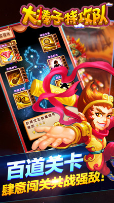 《大棒子特攻队》游戏以孙悟空大闹天宫,消灭天庭势力为题材。多种敌人与BOSS的设定,多个关卡的选择,多种道具的购买,让你回味无穷。再加上清新的画风、动听的音乐、流畅的手感等,让人欲罢不能。赶紧化身为齐天大圣,展开一段之旅吧,我们都在等着你,最强的人会是你吗?