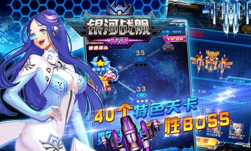 经典飞行激战,圆玩家一个梦。众多BOSS形态能力各异,击落BOSS,圆玩家一个英雄梦。不要犹豫,装机必备银河战舰:未来!
