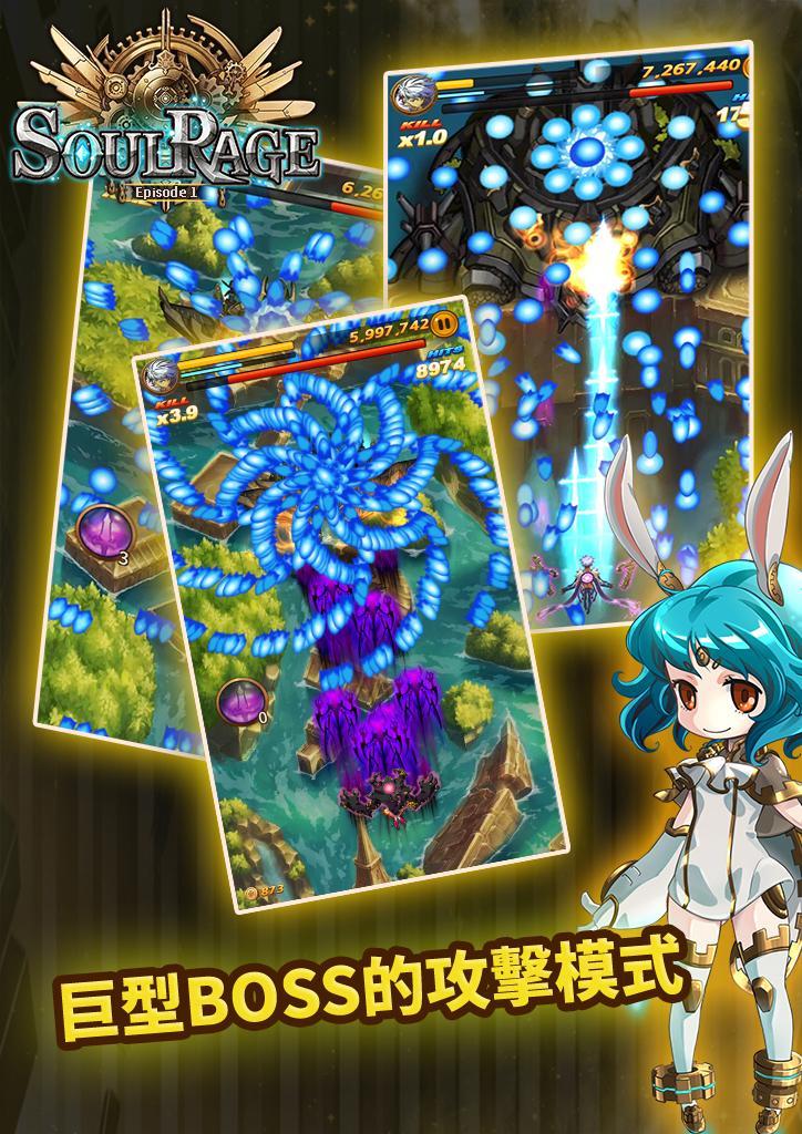 灵魂愤怒(Soul Rage)是一款有着创意弹幕设计,顶级死亡射线的射击类手游!是2015年新复古弹幕STG出现!如果你厌倦了蹩脚的STG,想要享受更加困难和有趣的愤怒之魂那么,我们邀请您玩这个最好的弹幕STG