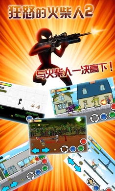 《愤怒的火柴人2》是一款画面非常火爆的横版动作游戏,玩家要控制火柴人不断的跳跃躲避敌人的子弹,然后通过强大的火力压制敌人,游戏采用比较常见的虚拟摇杆控制,左边是方向按钮,右边是攻击以及跳跃按钮,游戏中可以购买各种武器,然后通过不断的杀敌来赚取金钱再进行升级。游戏画面并不出彩,但是却有着细腻的连招设定,玩起来别有乐趣。
